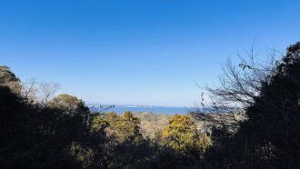 びっくりするほど(本当に本当に)急な階段を登り切り、山頂近くの「東京湾を望む展望台」に辿り着きました。